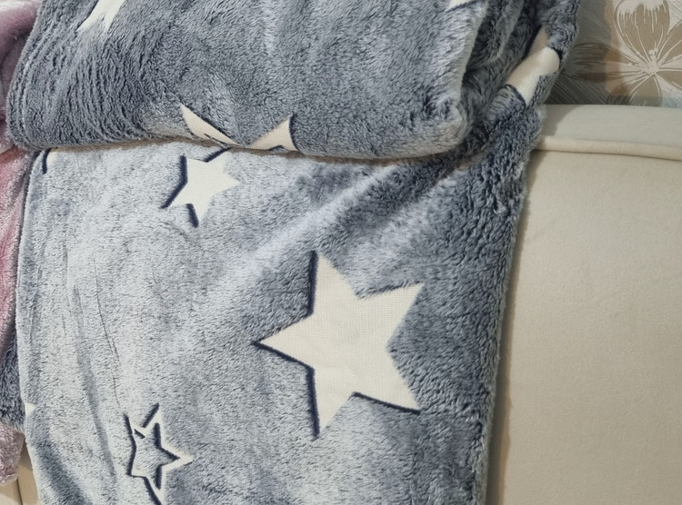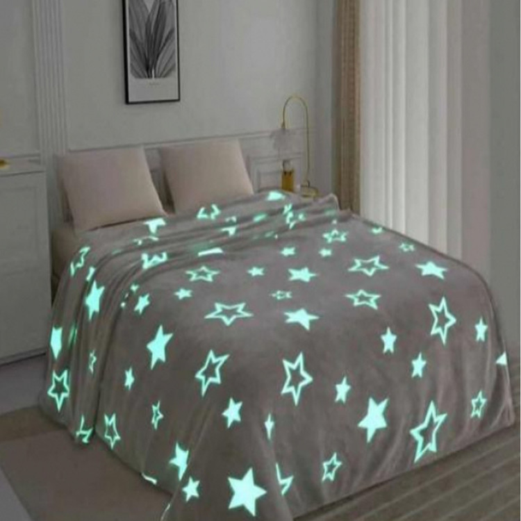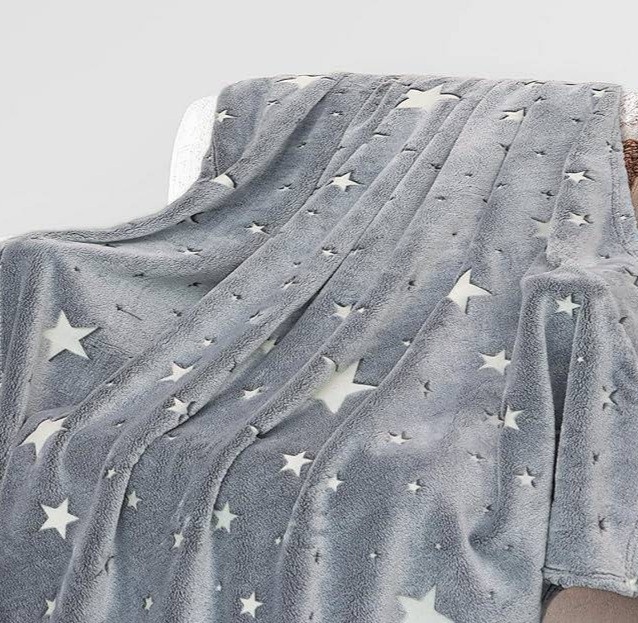 پتو شب نما یکنفره طرح ستاره طوسی روشن